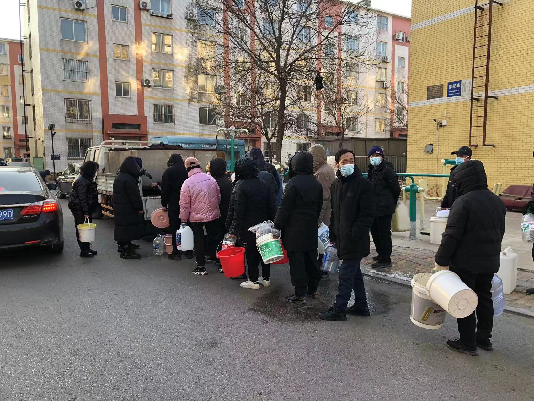 “水務(wù)集團(tuán)來送水了,這水送的太及時了,真是太感謝你們了!”幾位小區(qū)居民接過裝滿水的水桶感激地說到。
