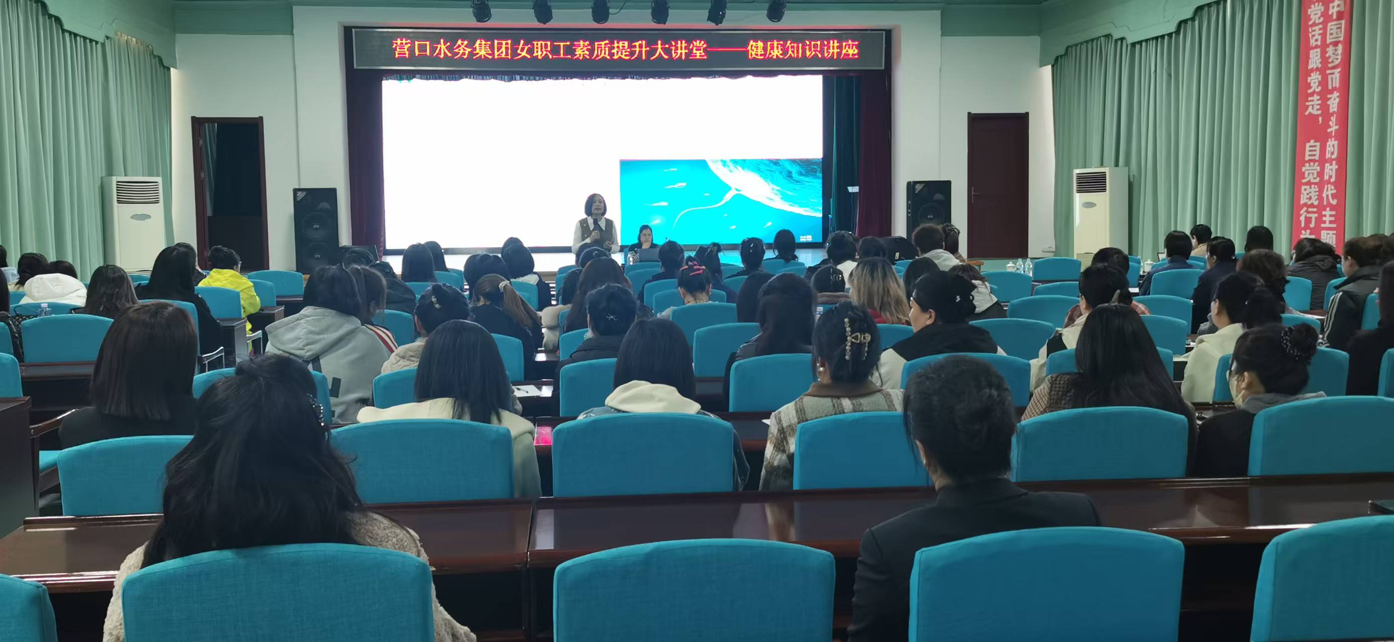 為進一步推進集團女職工素質(zhì)提升工程,關(guān)愛廣大女職工的身心健康,增強女職工預(yù)防疾病的意識和能力,水務(wù)集團工會深入開展“營口工人大思政課”——暨女職工素質(zhì)提升大講堂活動,于3月28日下午,在三樓大會議室,組織了專場女職工健康知識講座,集團150余名女職工參加了活動。