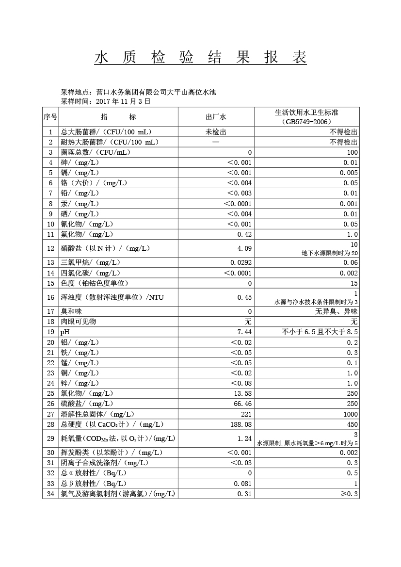 水質(zhì)報(bào)告