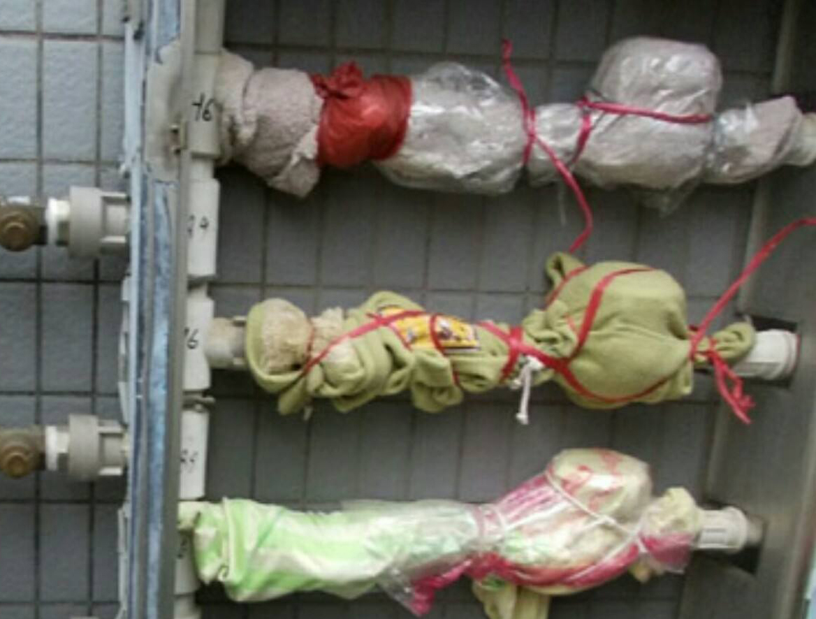 對(duì)于安裝在室外管道井內(nèi)的水表,可用保暖物品(如廢舊衣物、棉花、棉布、麻織物、草帶、草繩等物品)將水表及閥門裹好,裹護(hù)物要保持干燥,不要有水沾濕,并要裹得嚴(yán)實(shí)緊湊,然后再用塑料袋(膜)包住。