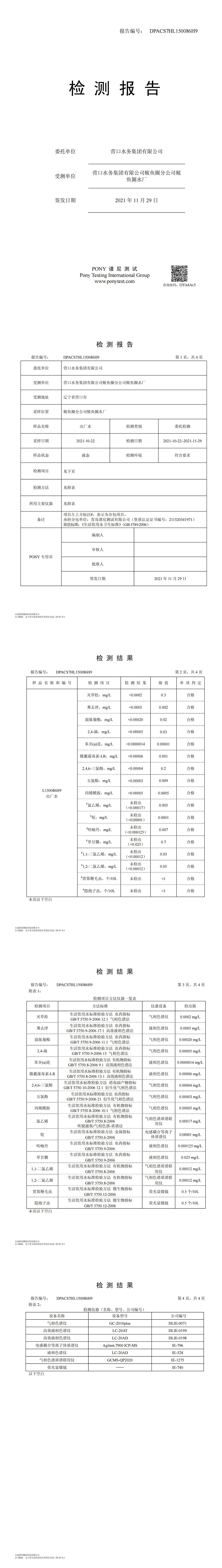 2021年4季度水質(zhì)公示報(bào)告